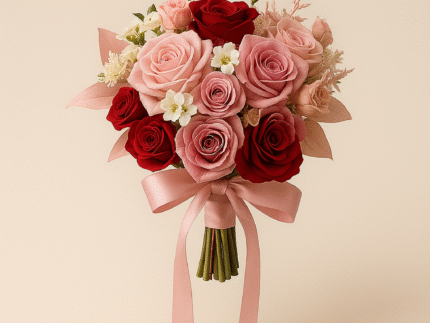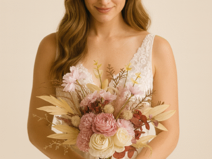 The finished bouquet is approximately 10-12 inches tall and 7-9 inches wide, making it the perfect size for wedding bouquets, home decorations, photography props, and more, creating a unique and beautiful display.